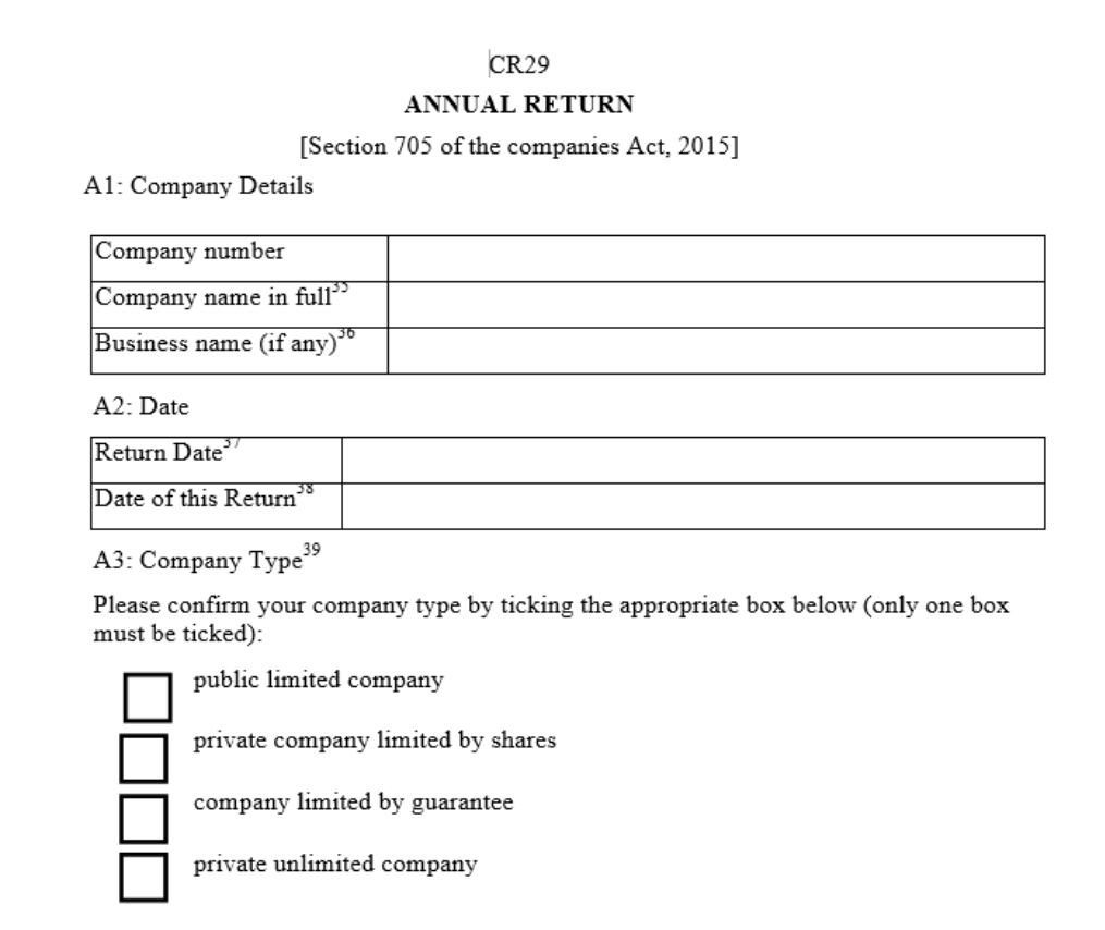 Annual Return – [Section 705 of the Companies Act, 2015] – Form CR 29